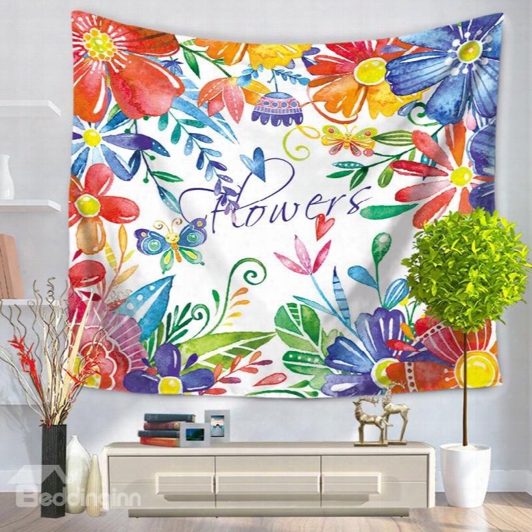 Colorful Flowers Edged Design Pastoral Style Decorative Hanging Wall Tapestry