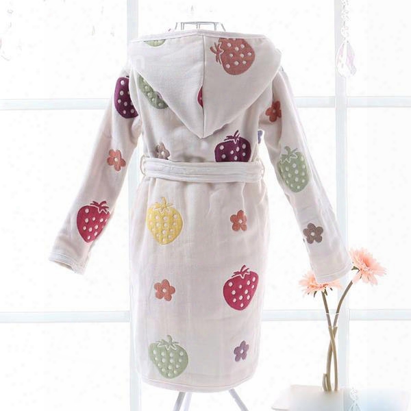 Cute Colorful Strawberry Pattern Cotton Kids Robe
