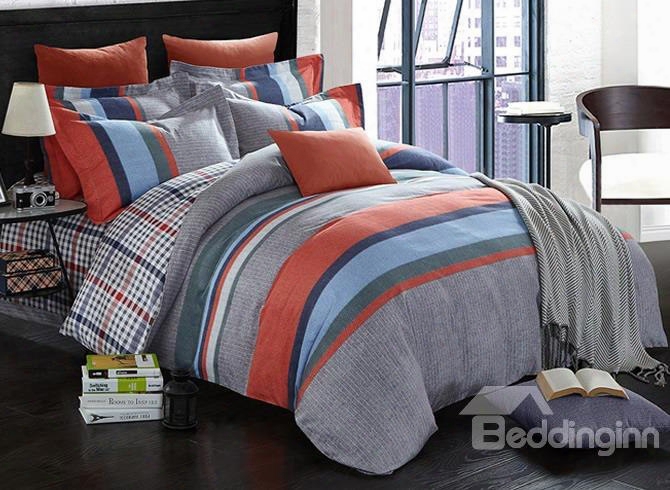 Colorful Stripes And Plaid Simple Style Brushed Cotton 4-piece Bedding Sets/duvet Ocver