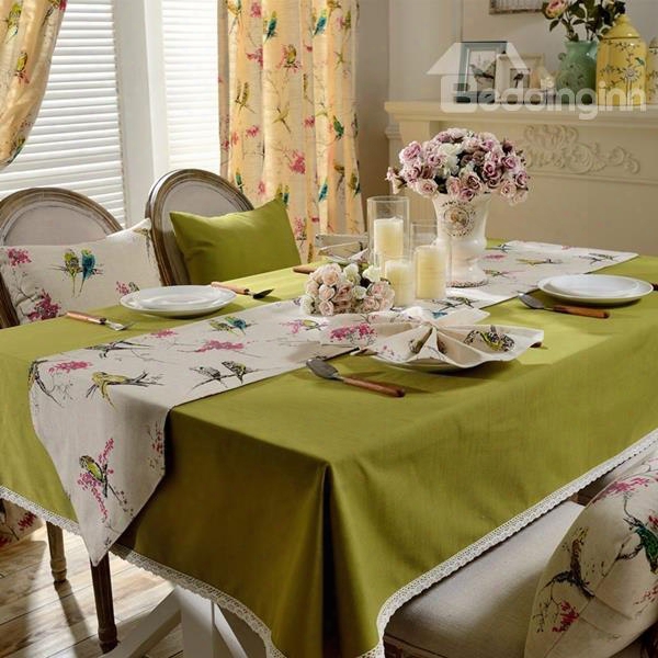 Pure Reseda Color Fabric Rectangle House Decoration Tablecloth