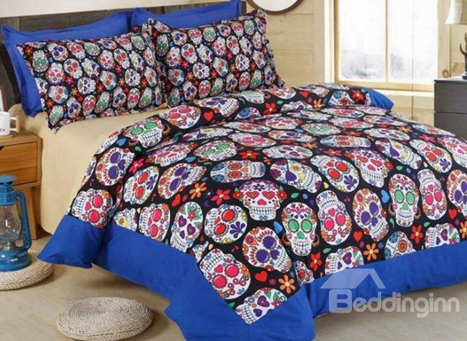 Shining Colorful Skull Print 4-piece Polyester 3d Duvet Cover Sets