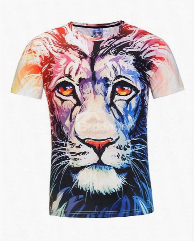 Colorful Lion Slim Fit Short Seleves Men 3d Printed T-shirt