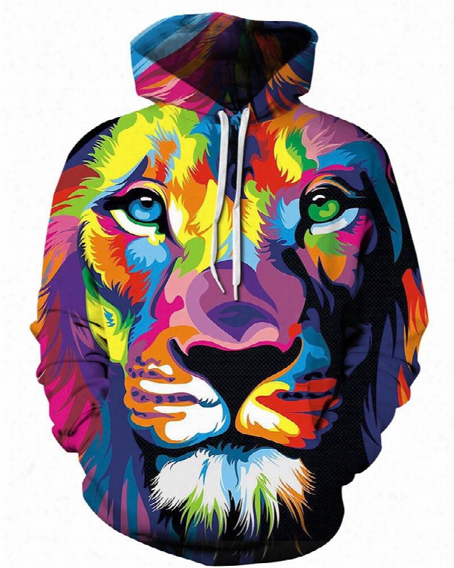 Colorful Tiger Face Long Sleeve 3d Pattern Hoodie