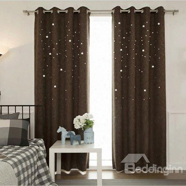 Blackout Polyester Korean Style Small Stars Solid Color Grommet Top Room Curtains